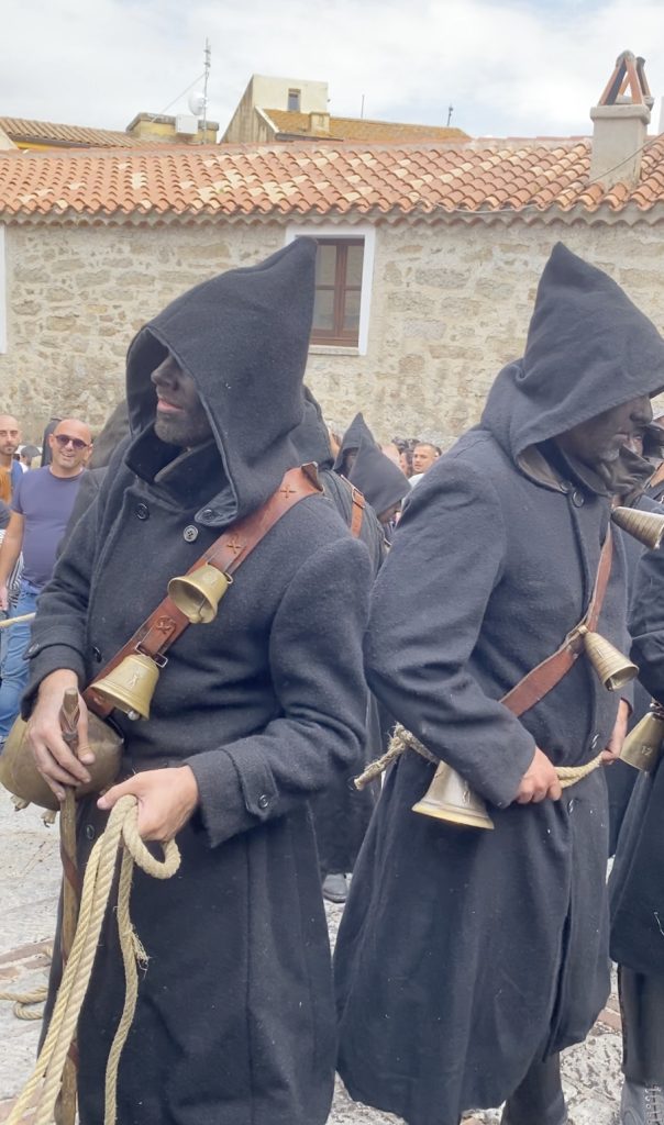 La maschera dei Thurpos è la protagonista indiscussa: uomini con il viso dipinto di nero, coperti da un mantello di orbace chiamato gabbanu, e da campanacci che suonano durante tutta la sfilata. Questi personaggi impersonificano la fatica dei contadini e dei pastori, rappresentando la lotta dell’uomo contro la natura.